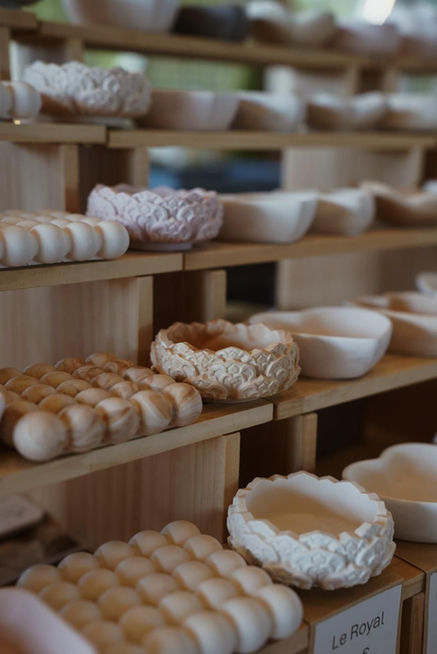 Dès l’entrée dans l'atelier, une idée domine : celle d’un quotidien embelli par de petits objets choisis ou créés avec soin. Bougies coulées à la main, fondants parfumés, objets en jesmonite ou accessoires textiles… chaque pièce est pensée comme une expérience émotionnelle. Rien n’est purement utilitaire : chaque création raconte une histoire, évoque une ambiance, invite à ralentir.